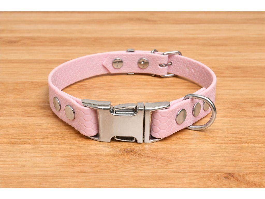 Obojek stačí opláchnout vodou – ideální pro aktivní psy, kteří milují bláto, déšť nebo koupání. - Moderní hexagonální textura